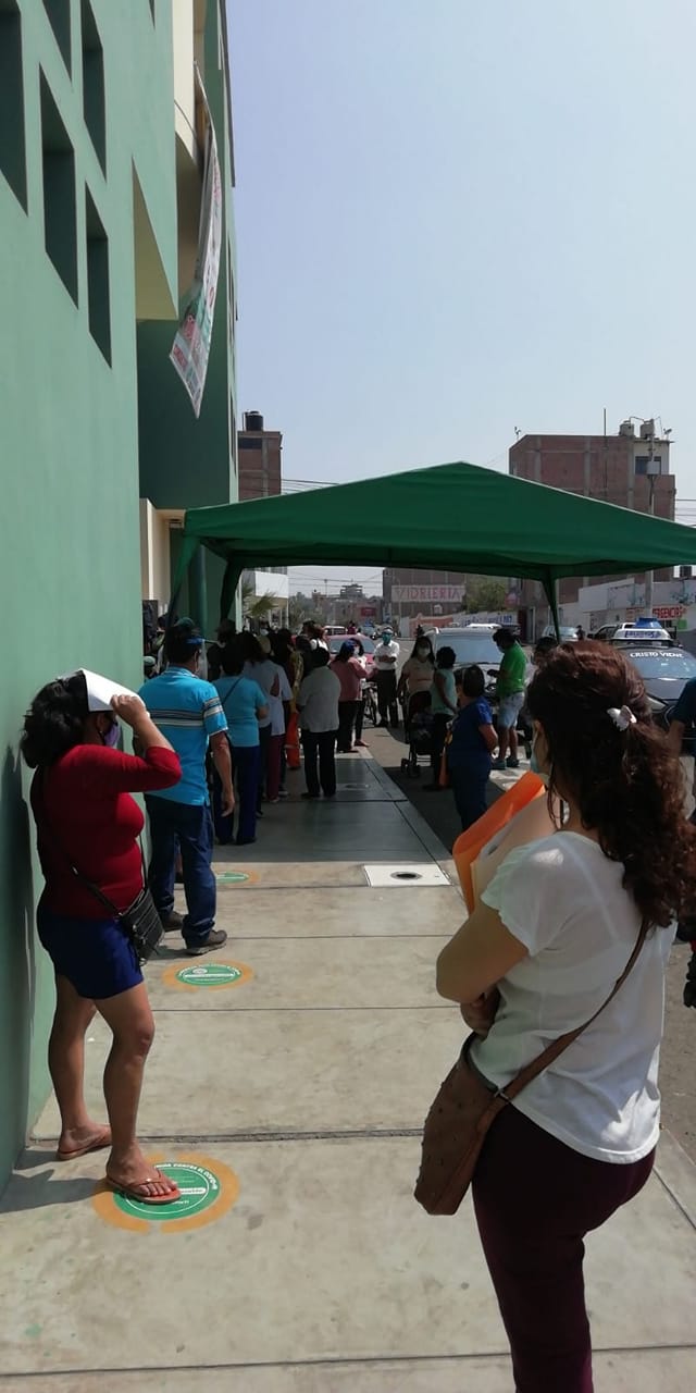 La Municipalidad Distrital de La Esperanza instaló un toldo en la zona de acceso a su sede principal, en la Plaza de Armas, para proteger del intenso sol a los contribuyentes que llegan a pagar sus arbitrios y que a esta hora forman una extensa cola.