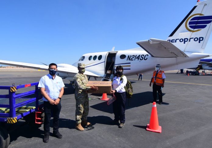 El gerente general del Gobierno Regional de La Libertad, Rogger Ruiz Díaz, llegó hasta el aeropuerto capitán FAP Carlos Martínez de Pinillos para supervisar que el cargamento se esté transportando de manera adecuada.