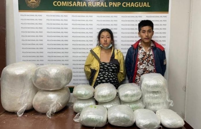 Los detenidos de nombres Dylan Jagel Sgiofer Fernandez Reyes (20) y Kimberlyn Zulma Rosario Guerrero Espinoza (24), fueron apresados en el anexo de Corrales, del distrito de Cochorcos, cuando se alistaban para trasladar la ilícita mercancía a Trujillo.