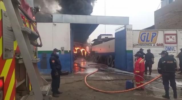 Más de 150 llantas de vehículos de carga pesada fueron destruidas por un incendio de gran magnitud que empezó al promediar las 5:15 a. m, de hoy martes 05 de octubre, en un local ubicado en la avenida Túpac Amaru n.º 904, del distrito de Trujillo.