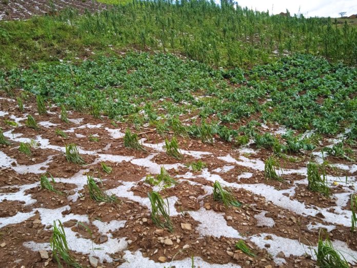 Más de mil hectáreas de sembríos fueron afectadas por la fuerte granizada del pasado viernes, que duró más de tres horas, dejando destruidos los cultivos en los centros poblados de Chocobamba, Patranarmarca, Huanucopampa y Fortaleza Andina, perteneciente al distrito de Huancaspata, donde se dedican al cultivo de maíz, papa, trigo y cebada, entre otros.