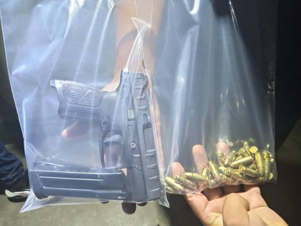 Durante la intervención, se incautó un chaleco antibalas, un cartucho de dinamita, cuatro fulminantes, varios teléfonos celulares y un arma de fuego tipo pistola Pietro Beretta con municiones.