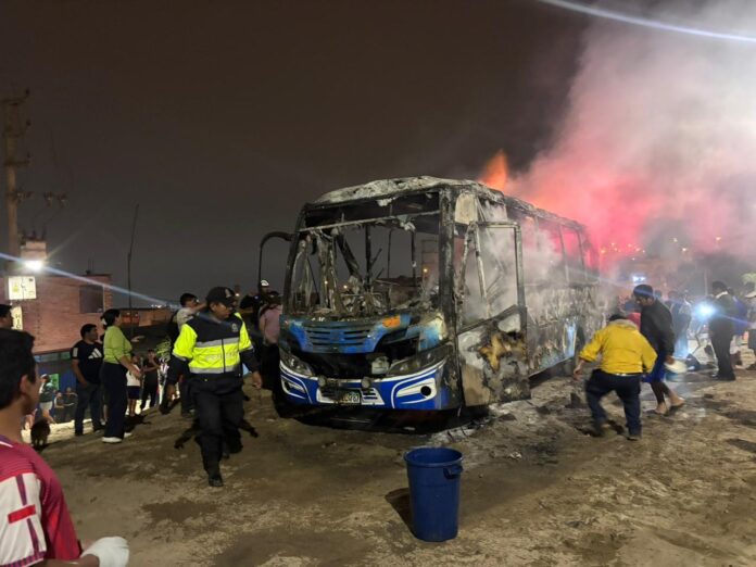 Sujetos desconocidos asaltaron esta noche un micro de la empresa de transportes Salaverry Express en el barrio C1 del distrito de Alto Trujillo, obligaron a los pasajeros a bajar y quemaron la unidad. Los extorsionadores se hicieron pasar como pasajeros para cometer su fechoría pasada las 9 de la noche. Dicha empresa cubre la ruta Salaverry-Alto Trujillo y viceversa.