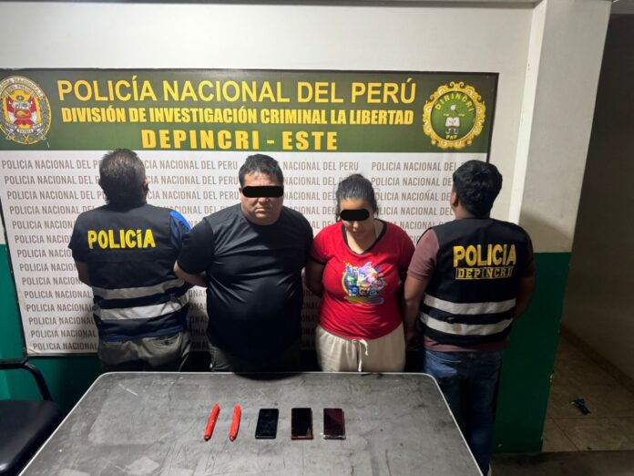La operación se realizó en la Av. Fernando de Montesinos con la calle 20, Urb. Chicago, Trujillo. Los detenidos son Mirko David Aliaga Camus (42), alias «Chalayo», cabecilla de la banda, y María Laura Muñoz Montesinos (25), alias «Colorada», pareja sentimental del cabecilla y miembro de la banda.