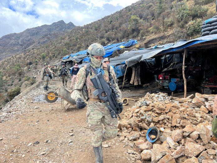 El Comando Operacional del Norte, a través del Comando Unificado Pataz (CUPAZ), conformado por las Fuerzas Armadas y la Policía Nacional del Perú, ejecutó la operación militar “Ñitiq Anka”, logrando un contundente golpe contra la minería ilegal en el sector Pampa Grande Alta, provincia de Pataz.