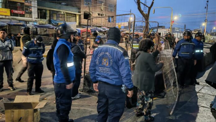 Decenas de estructuras metálicas y de madera dejadas en las calles por comerciantes informales fueron retiradas por personal de la Subgerencia de Operaciones de Fiscalización de la Municipalidad Provincial de Trujillo (MPT), en coordinación con la Policía Nacional del Perú y la Unidad de Comercio Ambulatorio Informal (UCAI).