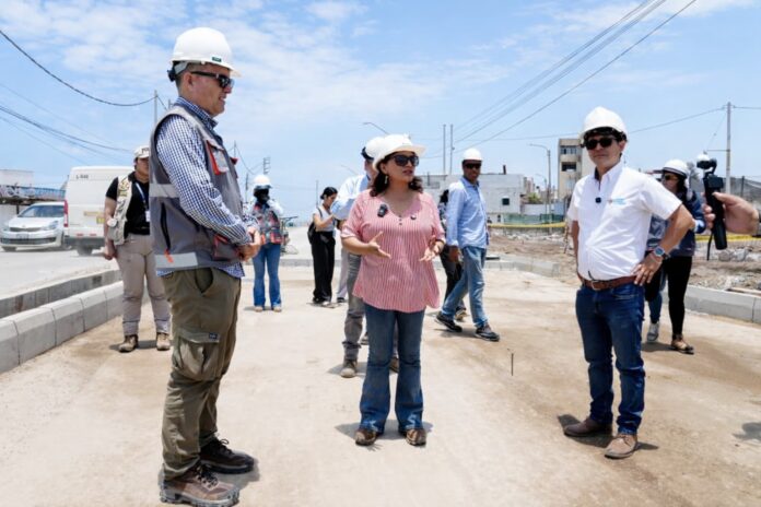 Durante una visita, la gobernadora Joana Cabrera Pimentel, acompañada del gerente general, Rogger Ruiz Díaz, el equipo técnico, supervisión e ingenieros residentes, recorrió la obra que demanda una inversión superior a los S/121 millones de soles, verificando el avance real de los trabajos y escuchando directamente las peticiones de los vecinos.