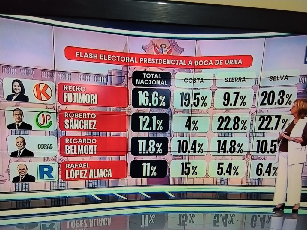 Datum e Ipsos revelaron los resultados a boca de urna de las Elecciones Generales 2026. En ambas encuestas, la candidata de Fuerza Popular, Keiko Fujimori, aparece en el primer lugar. Pero falta definir quien lo acompaña para el balotaje que será en sesenta días, es decir en el mes de junio.