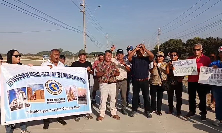 Empresarios, emprendedores, transportistas y pobladores del distrito de Huanchaco realizaron esta mañana una protesta contra el Gobierno Regional de La Libertad por el retraso en los trabajos de mejoramiento y ampliación de la carretera Huanchaco-Trujillo que abarca 9 kilómetros. La medida de lucha fue a la altura del centro poblado El Trópico.
