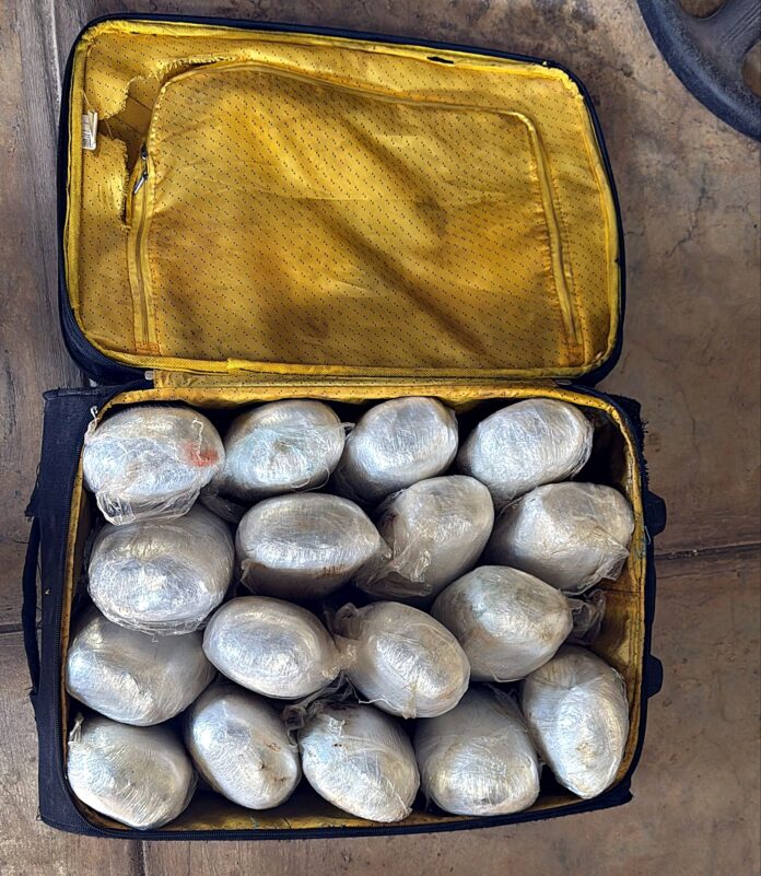 Personal policial interceptó un vehículo con placa de rodaje T6C124 que se desplazaba de Huamachuco hacia Trujillo. Tras una minuciosa inspección, se descubrió en el interior una maleta de color negro donde había 20 paquetes, de aproximadamente 2 kilos cada uno, lo que totalizó 40 kilos de droga.